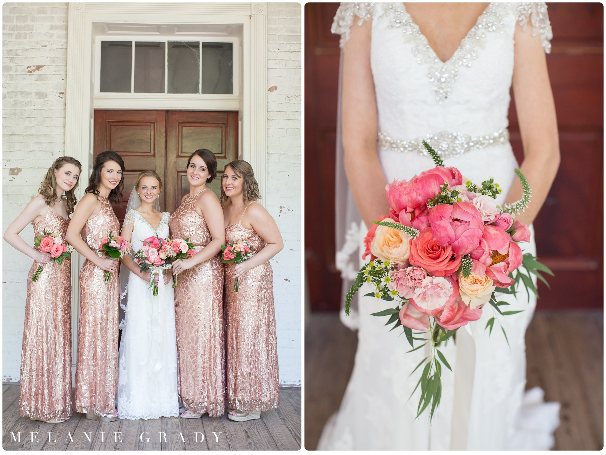 Melanie Grady wedding photography - Nashville engagement photography, Centennial Park, Pedestrian bridge, award winning Nashville wedding photographer, the best photographer in nashville, Historic Travellers Rest Plantation, southern wedding, bridal bouquet in pink and blush, plantation wedding, sequin bridemaids dresses